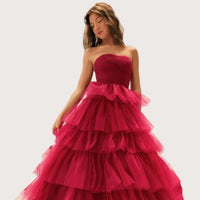 Check out this amazing light pink glitter tulle ruffled prom dress. It's perfect for your special night. This dress is a beautiful wine red color. It is made of sparkly tulle with glitter. So, when you move, it will shine and sparkle under the...- $199 USD